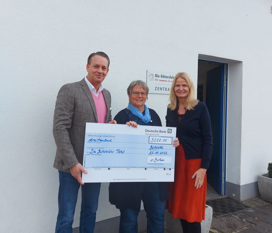 Sie spendeten einen Geldbetrag von 3.000 € an die Gütersloher Tafel e.V., weil sie der Meinung sind, "dass die Gütersloher Tafel e.V. groß und klein, jung und alt glückliche Momente schenkt".