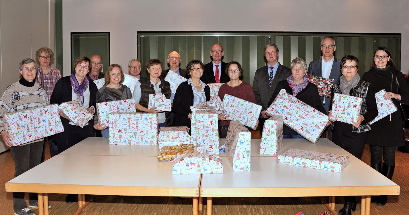 Rheda-Wiedenbrück(BS). Für Kinder und Jugendliche ist es das größte Glück, wenn Weihnachten ein buntes Paket mit ihrem sehnlichsten Wunsch unterm Tannenbaum liegt. Viele Familien können ihren Kindern oftmals diesen Wunsch nicht erfüllen, weil die neuen Winterschuhe oder die warme Jacke wichtiger sind als Spielzeug oder Sportsachen. Seit vielen Jahren nun schon sorgt die Bürgerstiftung Rheda-Wiedenbrück dafür, dass bedürftigen Kindern ein persönlichen Weihnachtswunsch erfüllt bekommen. Dank der heimischen Sponsoren Venjakob Maschinenbau, Leo und Ulrike Lübke, Lions-Club Rheda-Ems, Rotary Club, Fa. Peterburs, Ulrich Dresing, Claudia Bast-Roggendorf, Westag& Getalit AG, Adolph-Kolping-Stiftung, Fa. Effertz und Fa. Musterring, die insgesamt 10.000 Euro gespendet haben, war diese Aktion finanzierbar. Umgesetzt in die Tat aber haben es die Mitarbeiterinnen der Tafel der Gütersloher Tafel vor Ort in Rheda-Wiedenbrück. Heiner Wortmann vom Vorstand der Bürgerstiftung, dankte bei der Übergabe in der Verteilstelle der Tafel im Pfarrheim St. Johannes besonders den ehrenamtlichen Helferinnen, die mit ganz viel Liebe zum Detail in ihrer Freizeit Geschenke eingekauft und hübsch verpackt haben und die Päckchen überreichen. Knapp 200 Kinder können auf diese Weise zum Weihnachtsfest glücklich gemacht werden und nicht mit irgendetwas, sondern mit einem Geschenk, das ihrem größten Wunsch entspricht. „Leider sehen wir die leuchtenden Kinderaugen nicht“, meinte Wortmann in die Runde. „Das ist schon eine einzigartige Aktion im Kreis Gütersloh, wo alle Kinder aus den bedürftigen Familien gleichermaßen beschenkt werden“ betonte Ruth Prior-Dresemann, Geschäftsführerin der Gütersloher Tafel. Sie bedankte sich bei den Spendern im Namen der Familien. Wortmann versprach schon jetzt, dass diese schöne Aktion auch im nächsten Jahr stattfindet. Schön sei es auch, dass die heimischen Einzelhändler dem Projekt positiv gegenüberstehen, nicht Vorrätiges eigens bestellen und auch schon mal im Preis was machen. „Ich finde, das ist eine tolle Aktion, bei der viele Hände ineinandergreifen mit dem einen gemeinsamen Ziel, jungen Menschen eine Freude zu bereiten“, meinte Wortmann abschließend.