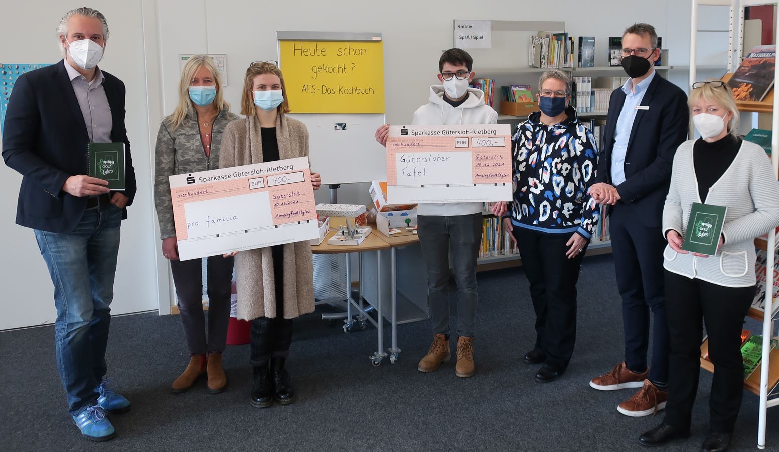 Ein Unternehmen auf die Beine zu stellen ist nicht einfach, wenn man über keinerlei Erfahrungen verfügt. Dennoch gingen 13 Schüler*innen der Anne-Frank-Schule das Abenteuer ein und waren mit der Schüler*innenfirma AmazingFoodStyles sehr erfolgreich. So erfolgreich, dass ein Gewinn von 800 Euro erwirtschaftet wurde, der nun jeweils zur Hälfte an die Gütersloher Tafel und pro familia überreicht wurde.