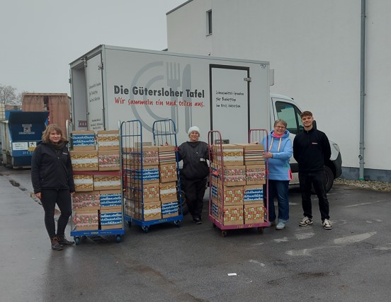 Ruth Prior-Dresemann, Geschäftsführerin der Gütersloher Tafel e.V., und unsere verantwortliche Mitarbeitende für die Weihnachtspäckchenaktion, Rafaela Pauli, nahmen die zahlreichen Weihnachtspäckchen mit Freude entgegen und bedankten sich von ganzem Herzen.