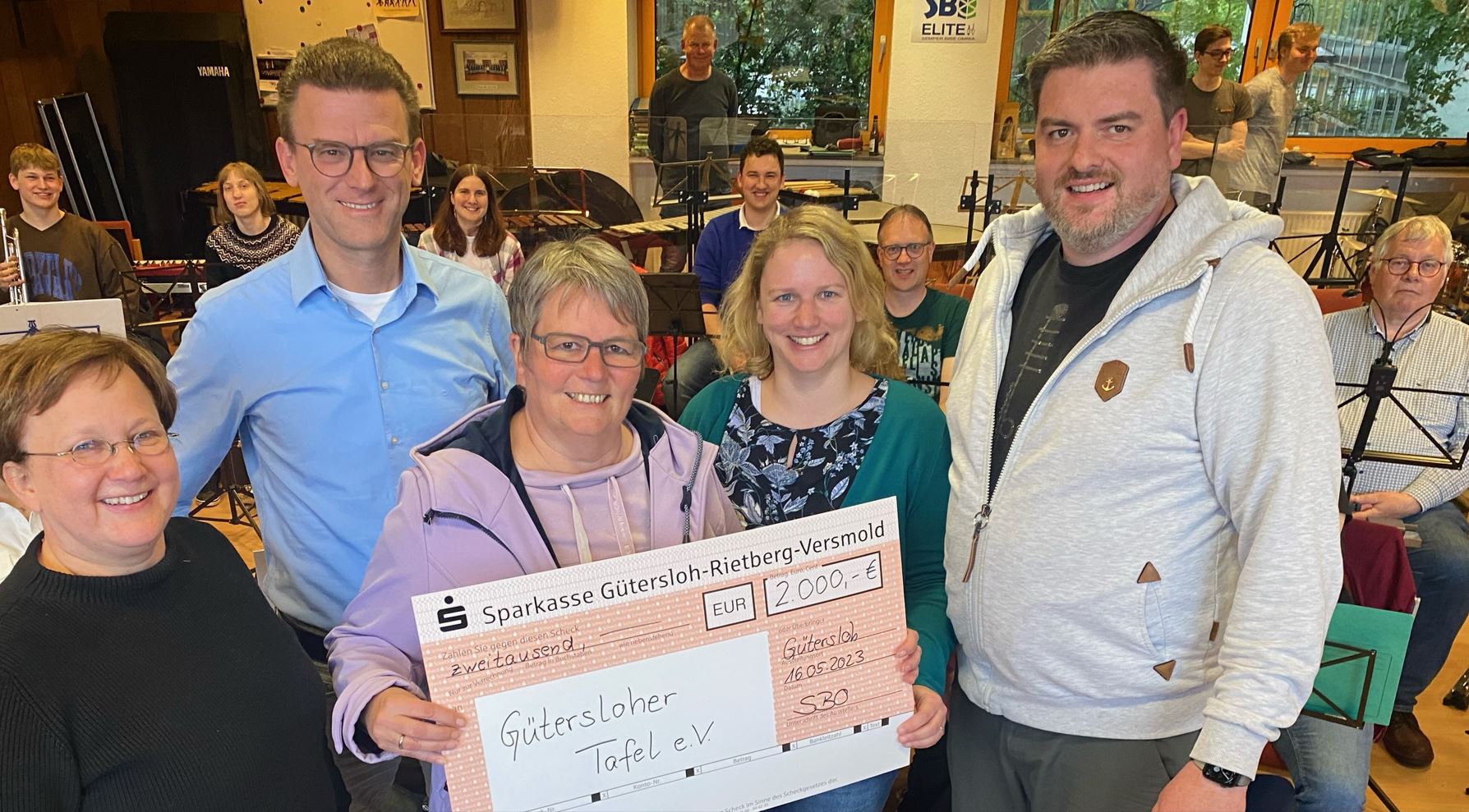 Am 16. Mai 2023 konnte das Orchester daher an die Gütersloher Tafel e.V. einen Scheck überreichen, auf dem die stolze Summe von 2.000 € stand. Wie schon Herr Koschmieder im Konzert drückte auch die Geschäftsführerin des Vereins Gütersloher Tafel e.V., Frau Prior-Dresemann, ihre große Freude darüber aus, dass das Gütersloher Orchester die Tafel bedacht hat und dass so viel Geld zusammengekommen war. „Die Zahl der Menschen, die durch die Tafel unterstützt werden, ist in der letzten Zeit auch durch den Krieg in der Ukraine stark gestiegen“ so Frau Prior-Dresemann „Das Geld wird daher dringend benötigt.“