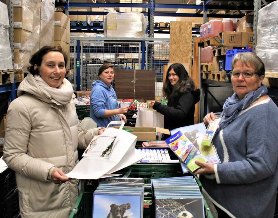 "Den Kindern eine besondere Freude zum Fest zu machen, ist der Bürgerstiftung Gütersloh eine Herzensangelegenheit", bekräftigt Katrin Meyer, Vorstandsvorsitzende der Bürgerstiftung. Frau Meyer überzeugte sich bei einem Besuch des Tafel-Zentrallagers an der Kaiserstraße in Gütersloh davon, mit wie viel Elan und Liebe die entsprechenden Päckchen gepackt wurden.