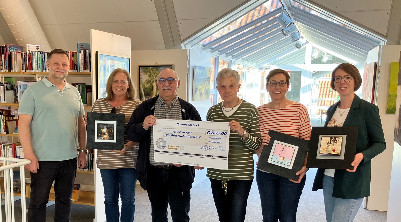 Nach dem erfolgreichen Abschluss ihrer Fotoausstellung „Genuss im Quadrat“ über die Welt der Lebensmittel haben die Fotofreunde eine besondere Aktion ins Leben gerufen. Die Mitglieder der Fotogruppe verkauften ihre Fotografien gegen eine Spende und konnten dabei die stolze Summe von 555 Euro sammeln. Das Geld wurde nun vollständig an die Gütersloher Tafel e.V. übergeben, um deren wichtige Arbeit in der Region zu unterstützen..