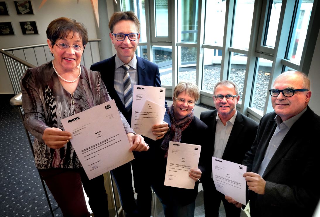 Da die Gütersloher Tafel keine Lebensmittel kaufen darf, wurde die großzügige Spende der Firma Fricke in eine Sach- und eine Geldspende aufgeteilt. Für die Hälfte des Betrages kaufte die Firma Fricke haltbare Lebensmittel wie Zucker, Mehl, Konservendosen, Nudeln und Hygieneartikel. Diese gehen zu Weihnachten als Weihnachtstüten gepackt an die Empfänger. Die zweite Hälfte der Spende fließt in die dringend notwendige neue Edelstahlküche.