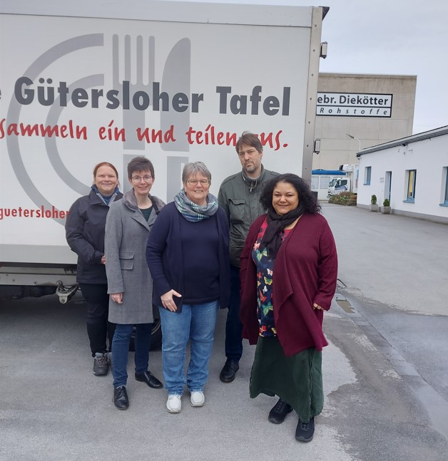 Ein Blick hinter die Kulissen der Gütersloher Tafel e.V. warfen vier Mitglieder des Ortsverbandes der Versmolder Grünen. Sie besuchten die Gütersloher Tafel e.V. und hatten eine großzügige Spende im Gepäck. Die Geschäftsführerin Frau Ruth Prior-Dresemann zeigte den Interessierten ihre Tafel. Die Besucherinnen und Besucher waren sehr beeindruckt von den Räumlichkeiten, der Logistik und der angenehmen Arbeitsatmosphäre.