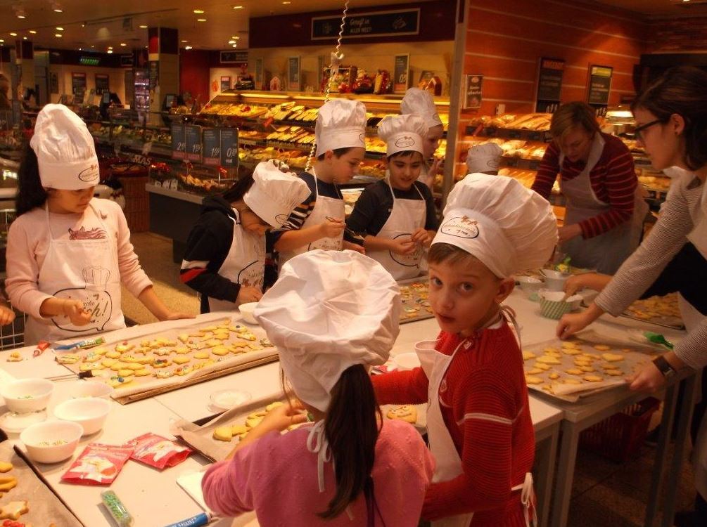 Im Real-Markt in Gütersloh haben die Kinder der Grundschule Sundern eine Backstube eingerichtet und fleißig leckere Plätzchen für die Gütersloher Tafel gebacken.