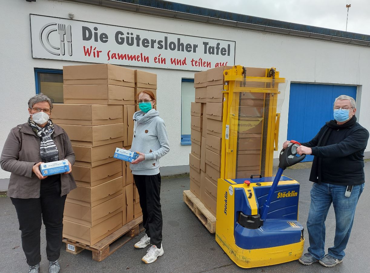 59.000 VPE-Masken im Januar und 29.000 VPE-Masken im Februar für die Empfängerinnen und Empfänger der Gütersloher Tafel e.V.