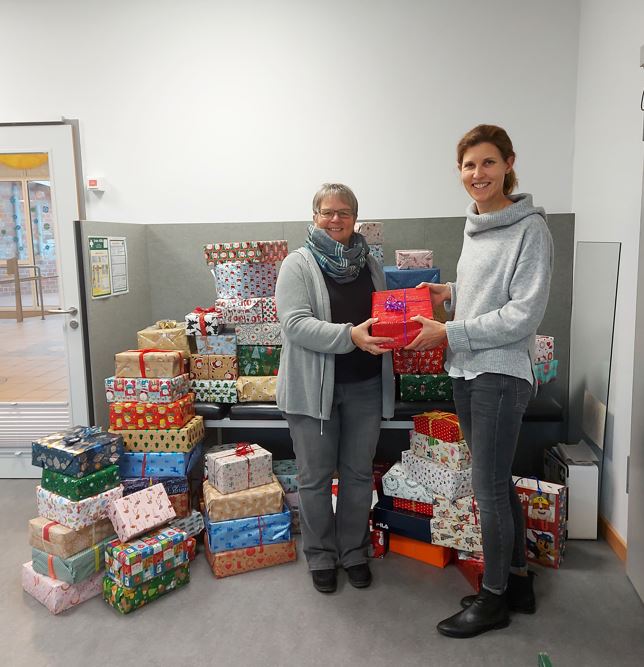 Auch in diesem Jahr sind wieder viele Pakete zusammen gekommen. Mit dieser Unterstützung gelingt es uns, jedem unserer über 900 Kinder in Gütersloh ein Geschenk zu Weihnachten zu machen. Die Geschenke werden in der letzten Ausgabe vor Weihnachten ausgegeben, damit sie passend zum Fest bei den Kindern ankommen. Wir danken auch der Rektorin Frau Miriam Henze, die mit Ihrem Engagement dieses Projekt erst ermöglicht.