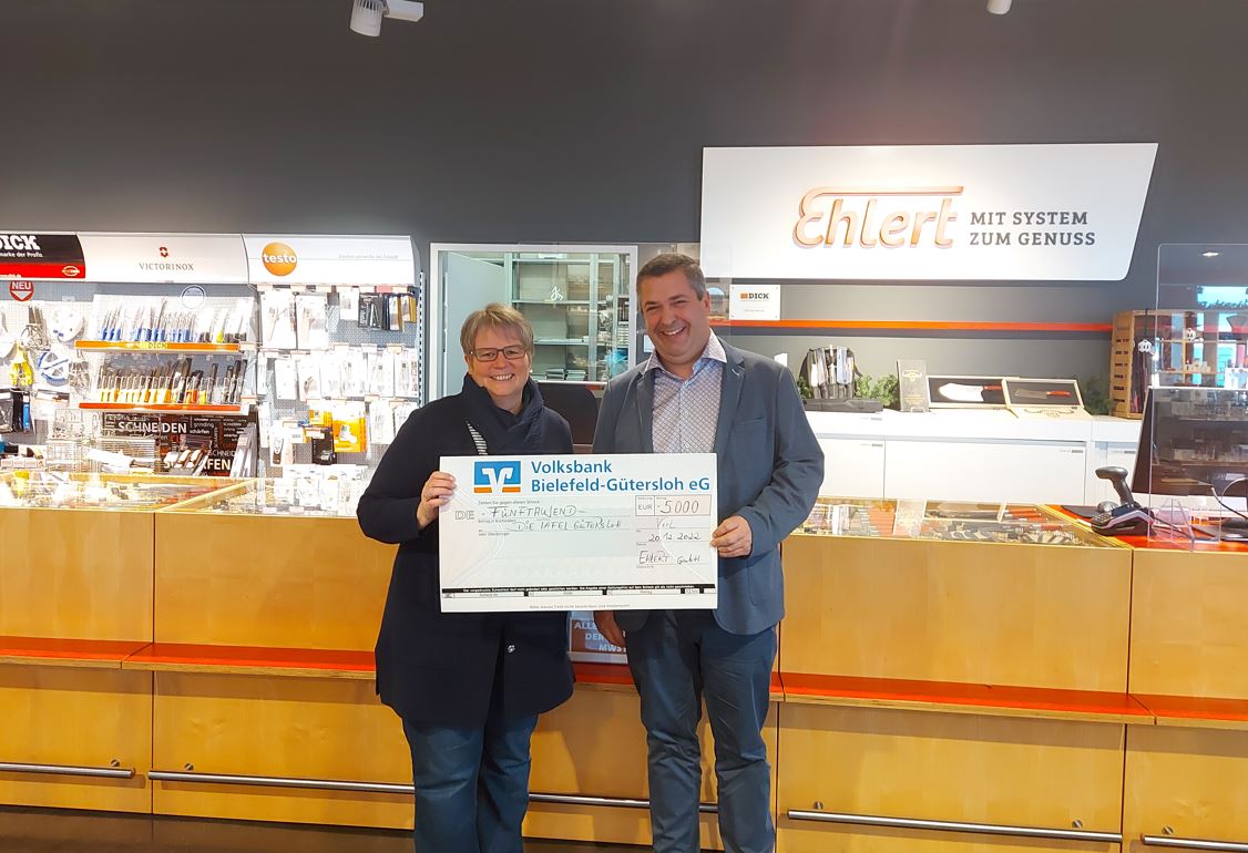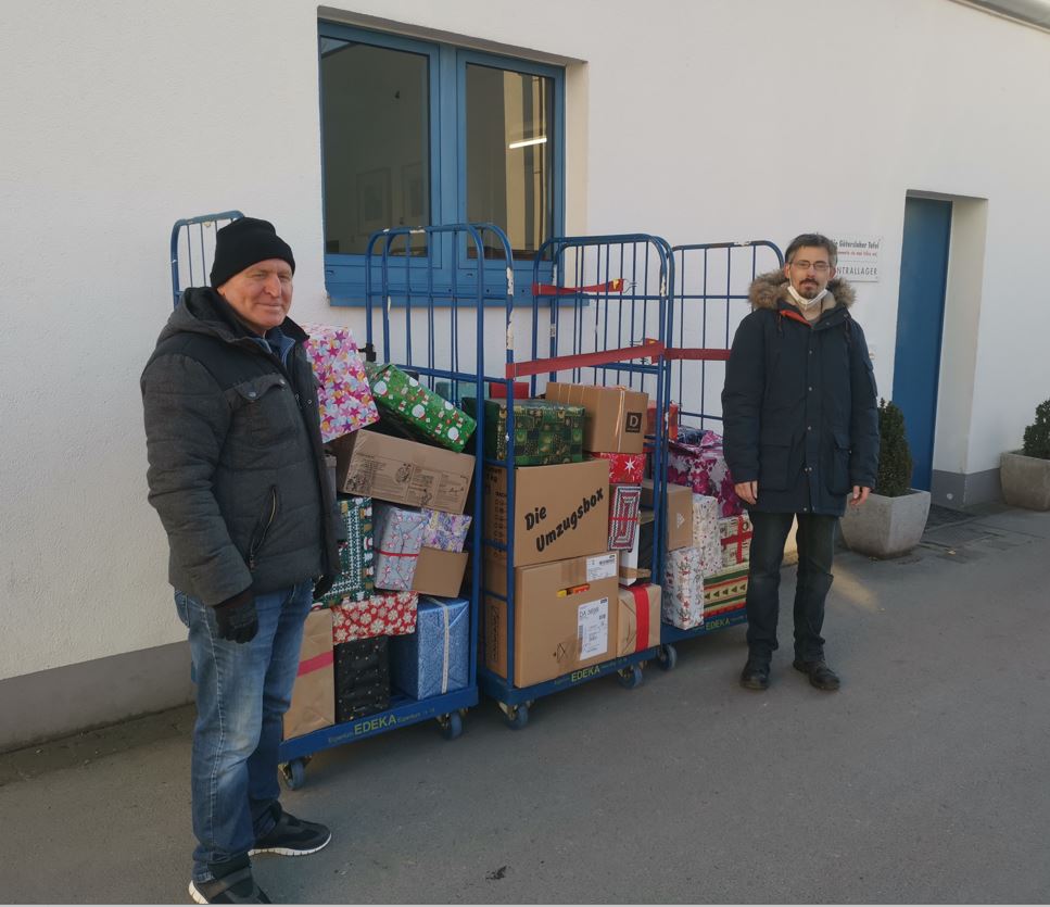 Bernd Schreiber, Betriebsratsvorsitzender vom Werk Gütersloh brachte die Päckchen vorbei. Die Mitarbeitenden der Gütersloher Tafel e.V. nahmen diese gerne entgegen, damit sie bei den nächsten Verteilungen an die Familien weiter gegeben werden und passent zu Weihnachten ankommen.