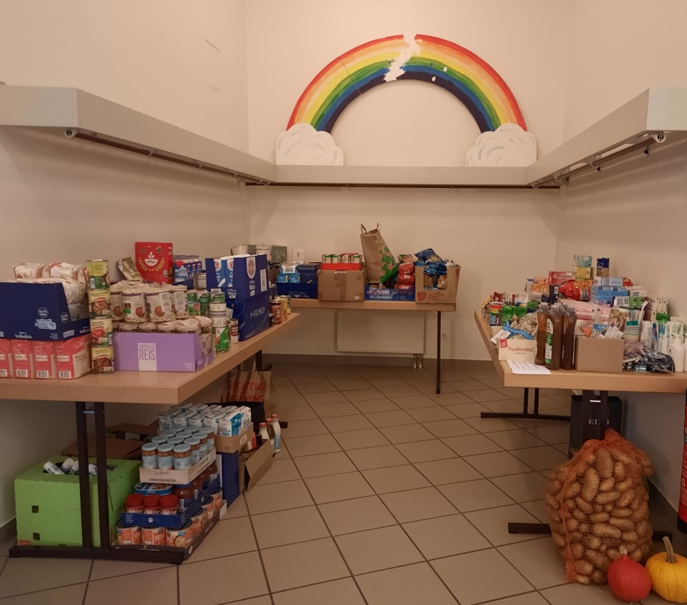 Volker Sädler und Burkhard Heine von der Neuapostolischen Kirche Gütersloh besuchten die Gütersloher Tafel e.V. und brachten Geschenke zum Erntedank. Nach einer Führung, die Ruth Prior-Dresemann, Geschäftsführerin der Gütersloher Tafel e.V., den beiden Gästen rund um das Tafelgelände und das Lager präsentierte, überreichten Herr Sädler und Herr Heine nicht nur gesammelte Lebensmittel, sondern auch eine Geldspende.