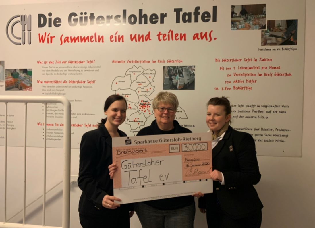 Mit der vorweihnachtlichen Plätzchenback-Aktion auf dem jährlichen Engelmarkt in Marienfeld konnte die Gütersloher Tafel mit einer Spende unterstützt werden. Ein Betrag in Höhe von 300,00 € konnte für die Gütersloher Tafel verbucht werden.