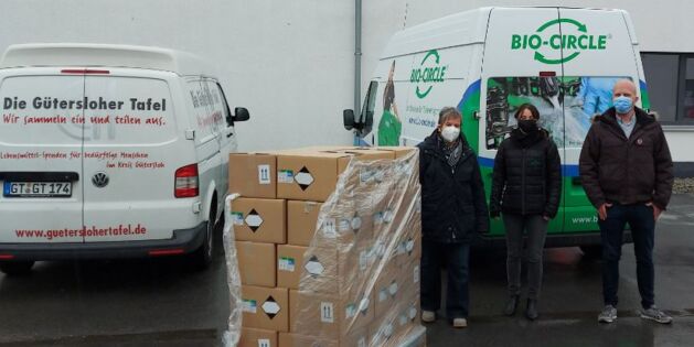 Die Bio-Circle Surface Technology GmbH spendete der Gütersloher Tafel e.V. 750 Flaschen Handdesinfektionsmittel...