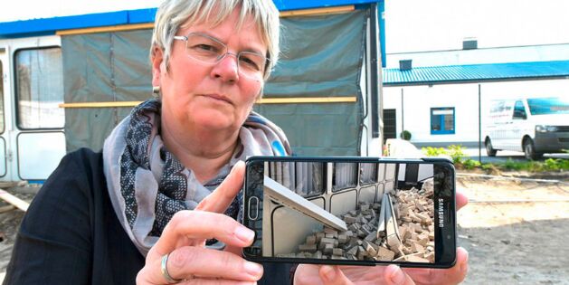 Unfall: Beim Abriss des ehemaligen Bürotraktes des Roten Kreuzes stürzte eine Wand um und richtete enormen Schaden bei den Lebensmittelsammlern an. (Quelle: Neue Westfälische)