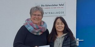 Frau Claudia Drosten überreichte im Namen der Frauensportgruppe des SV Spexard der Geschäftsführerin der Gütersloher Tafel e.V. Frau Ruth Prior-Dresemann einen Briefumschlag...