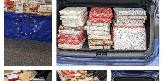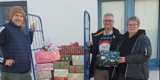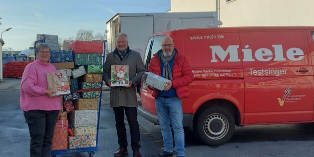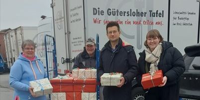 Die Mitarbeiterinnen und Mitarbeiter der Firma Jung GmbH aus Steinhagen brachten einen Wagen voller Pakete...