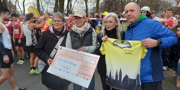 Bevor beim 39. Silvesterlauf der Laufsportabteilung des Post SV Gütersloh der erste Startschuss viel, überreichten drei Vertreter der Laufsportabteilung einen Scheck an Ruth Prior-Dresemann...