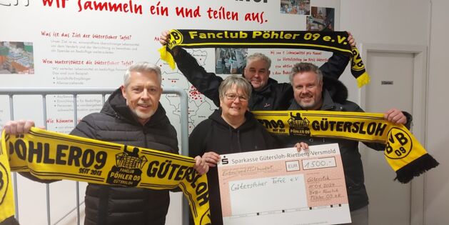 Der Gütersloher Fanclub Pöhler 09 bedachte die Gütersloher Tafel e.V. mit einer großzügigen Spende...